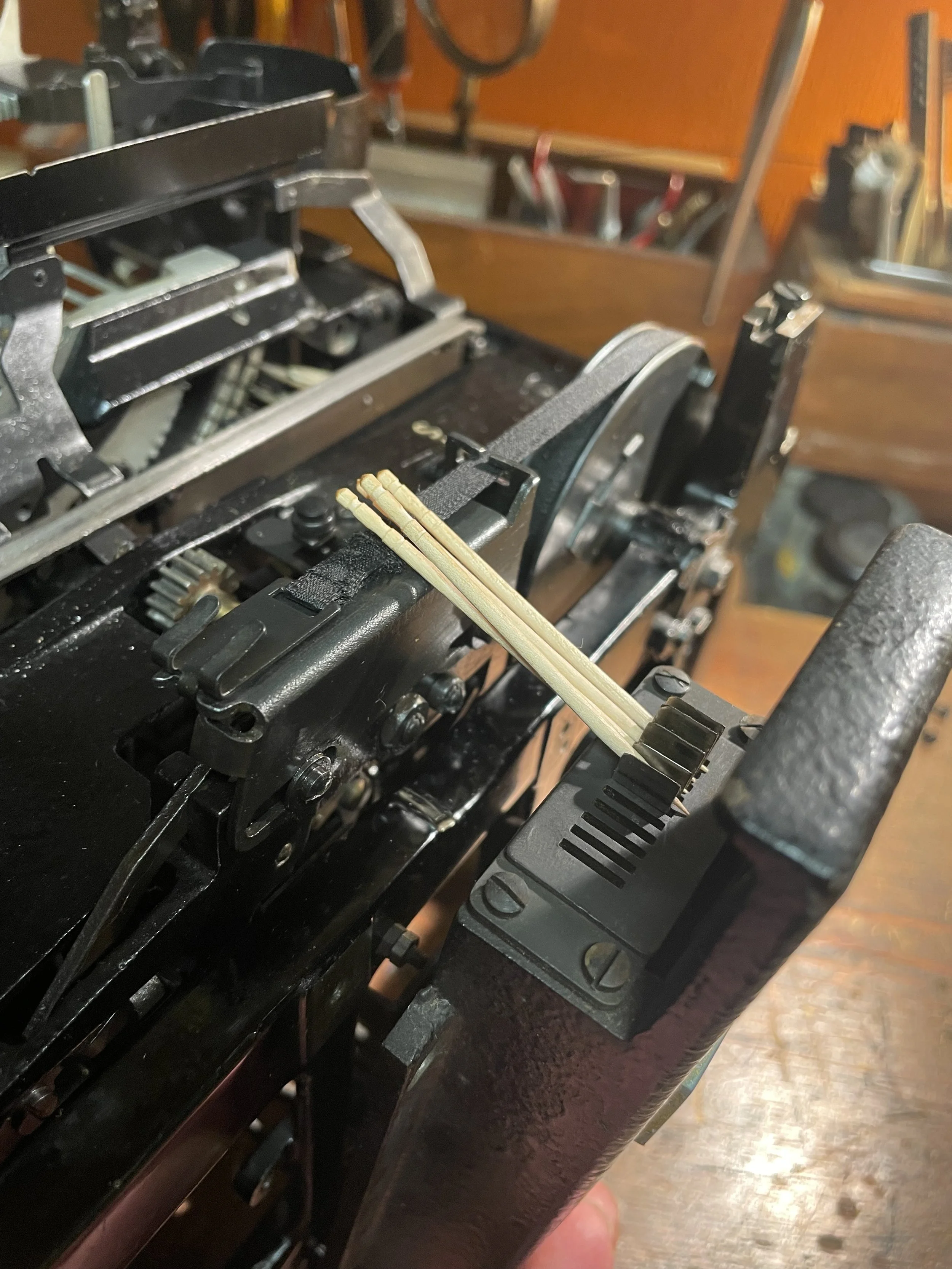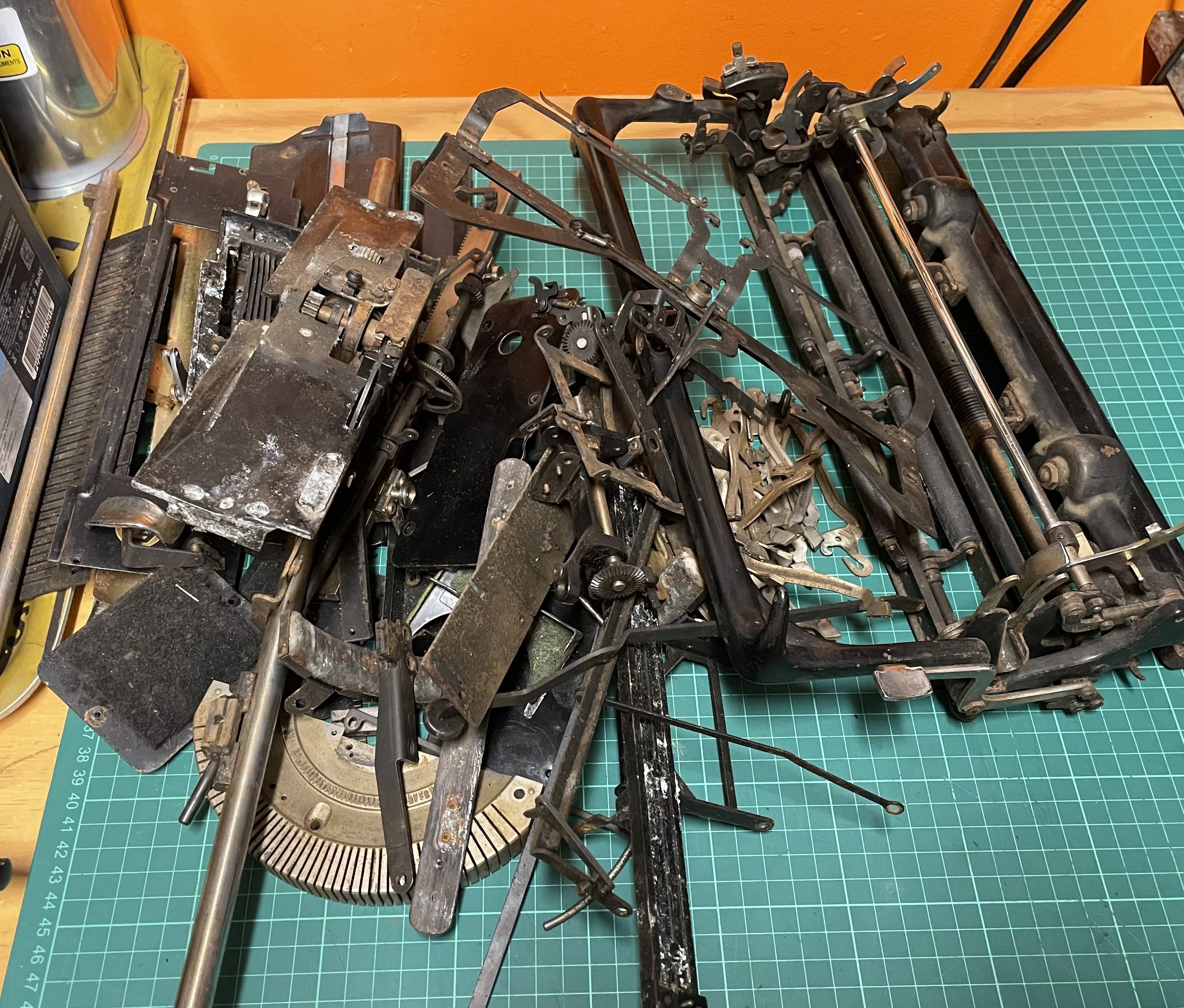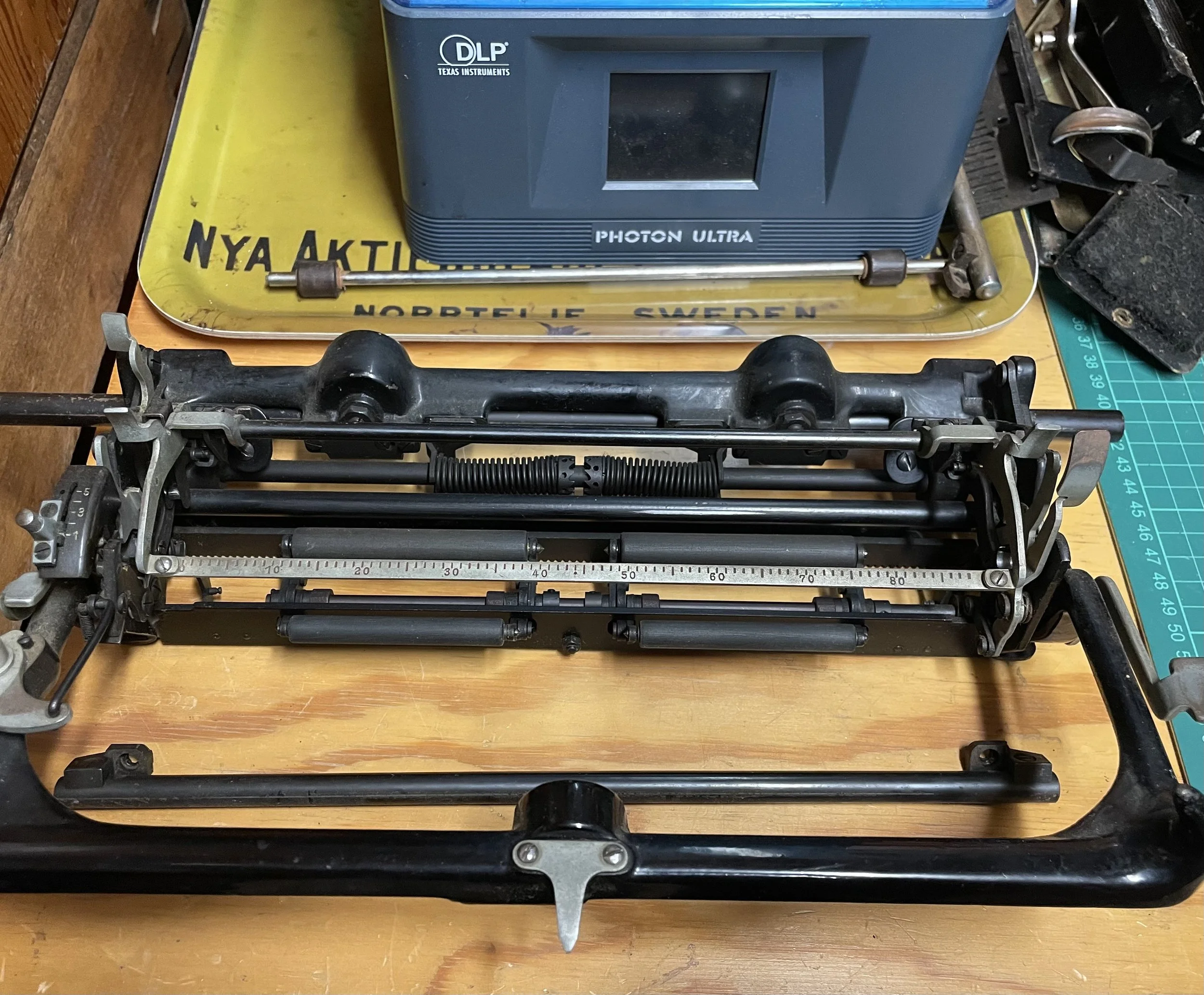 Time for the platen assembly. I compare with donor machine. Grim´s Erika is younger, I can see how the factory was simplifying the construction to reduce machining costs.