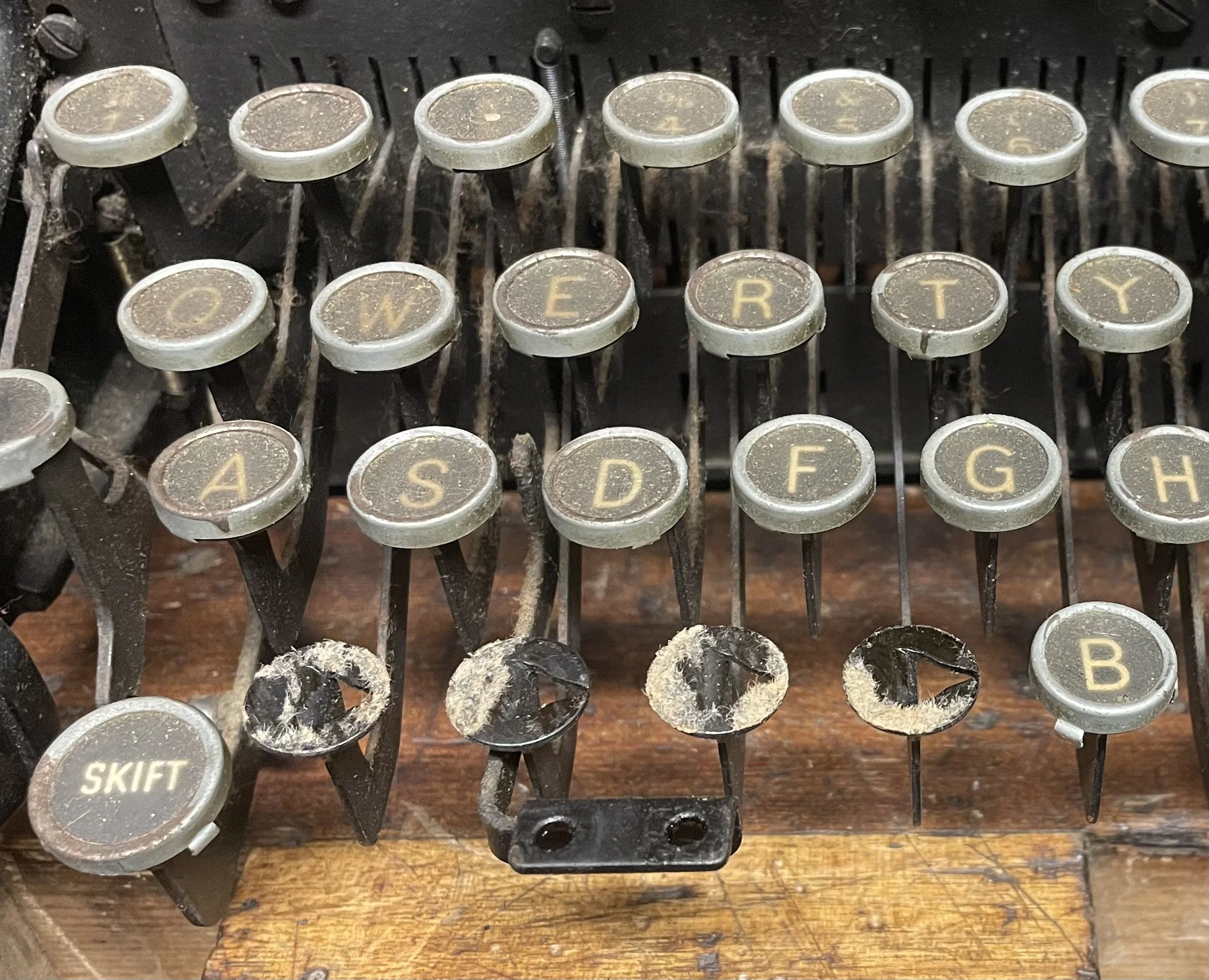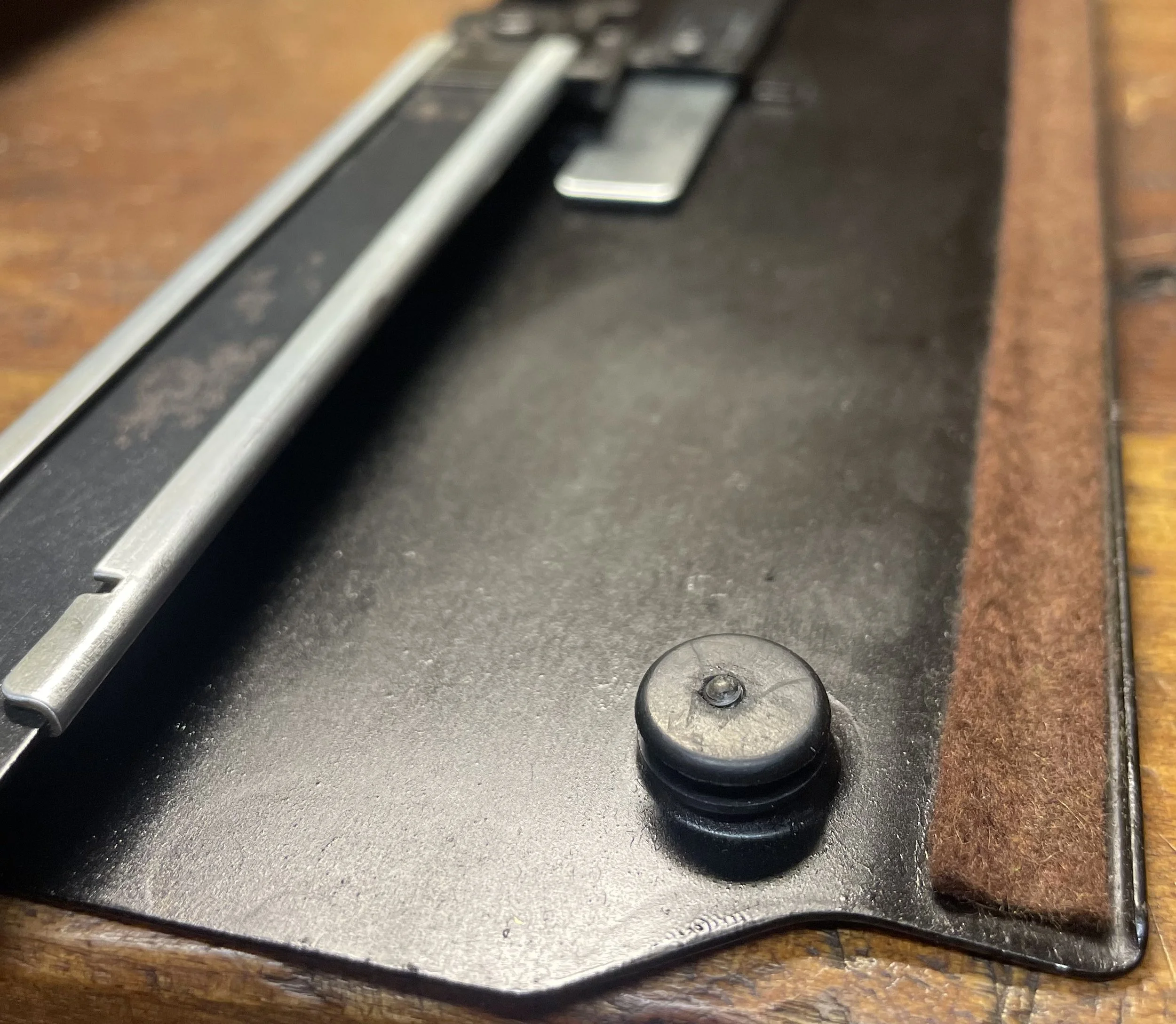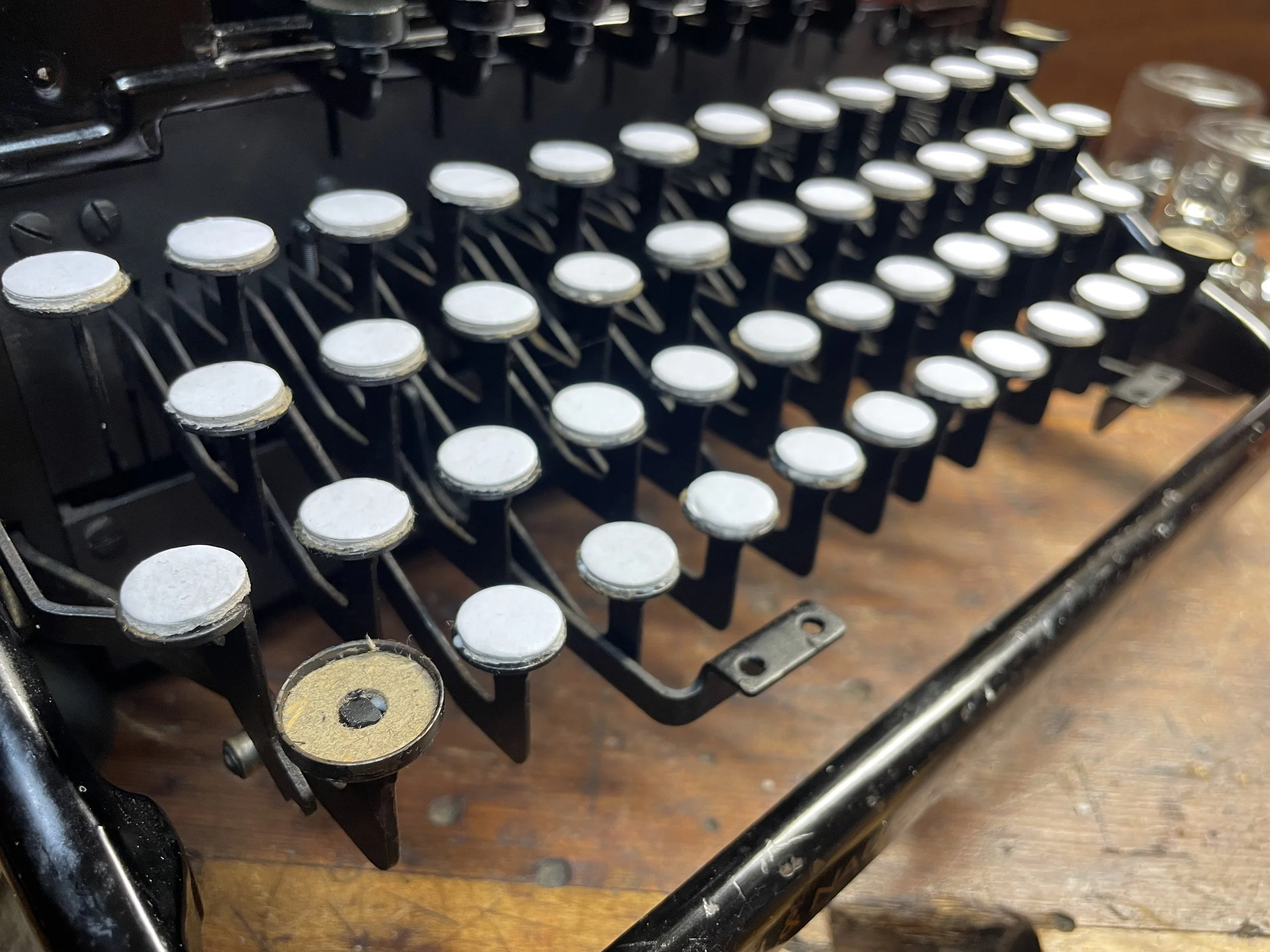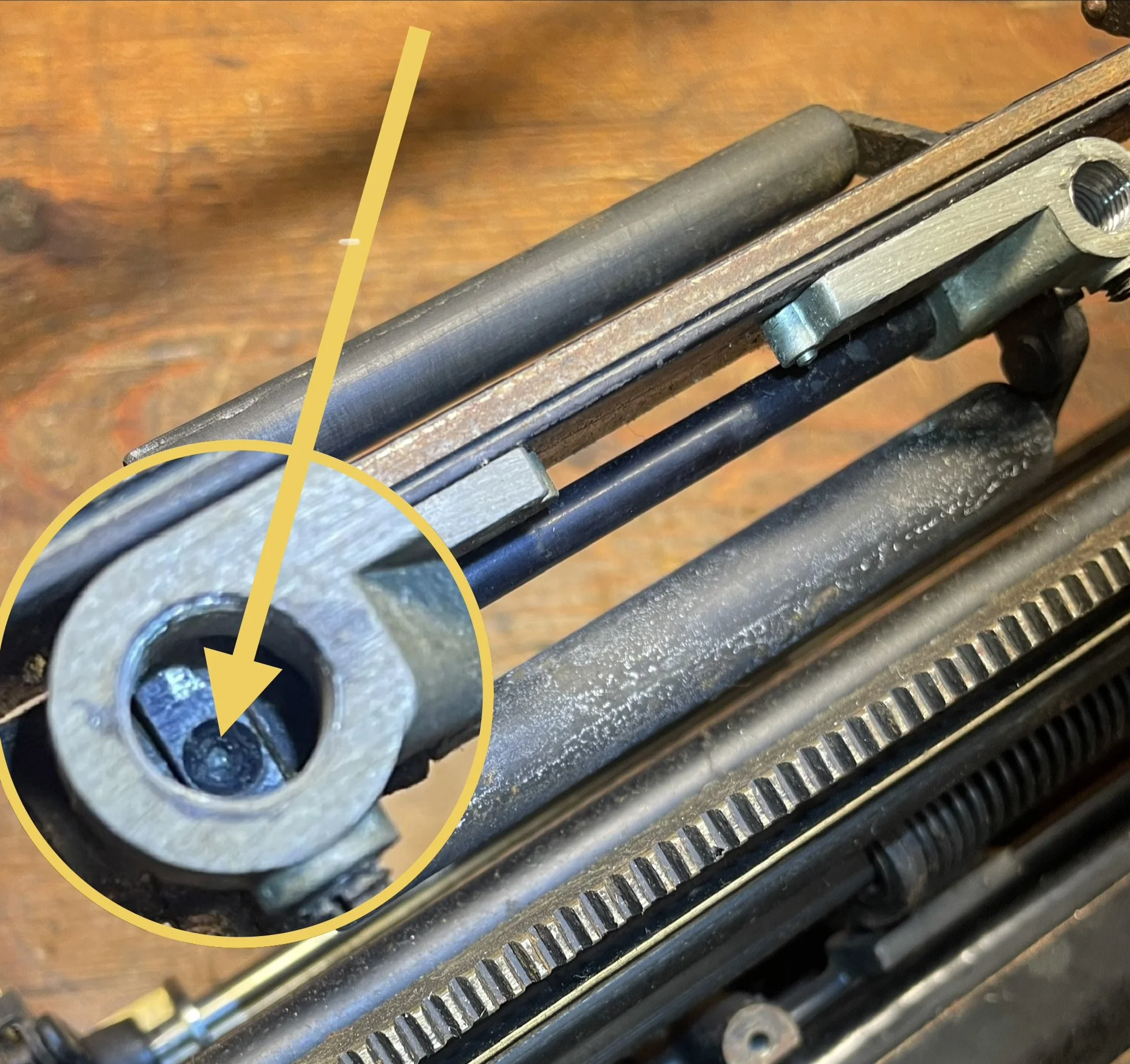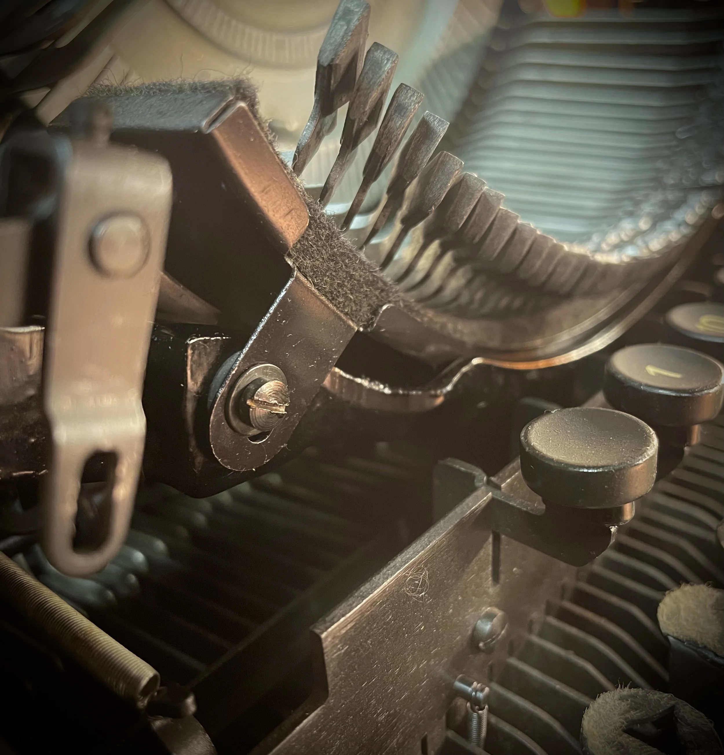 While keys are soaking I take a look at type-arms rest assembly. It is loose and seems incomplete. I use the machine from Grim as a reference - yes, there are rubber spacers where the type arms rest attaches to the frame.
