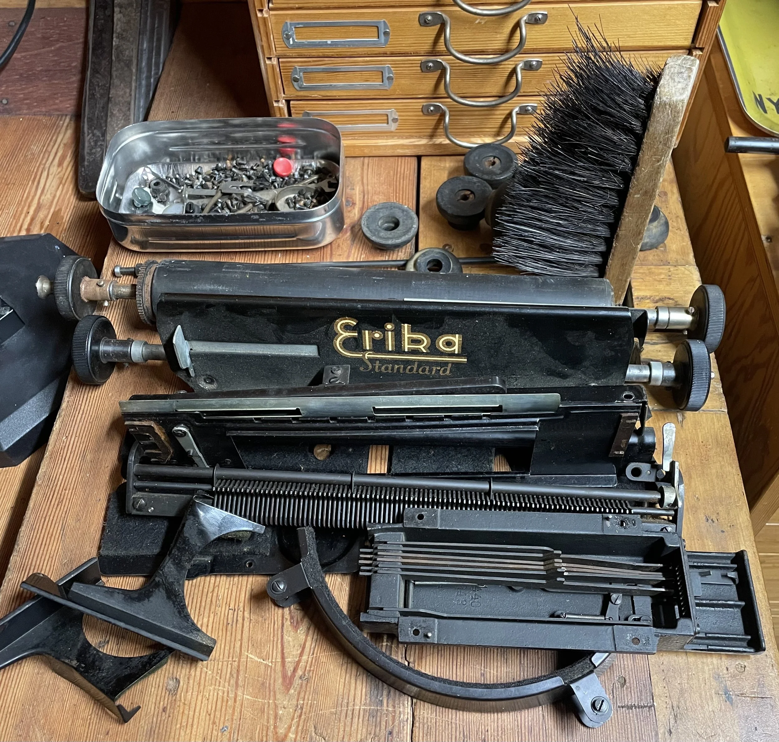 Grim´s Erika got screwed apart to tiny-tiny bits and all useful parts and screws were harvested. Being a rust-bucket and non-functional she at least had all screws in pristine shape. Just dirty and with surface rust.