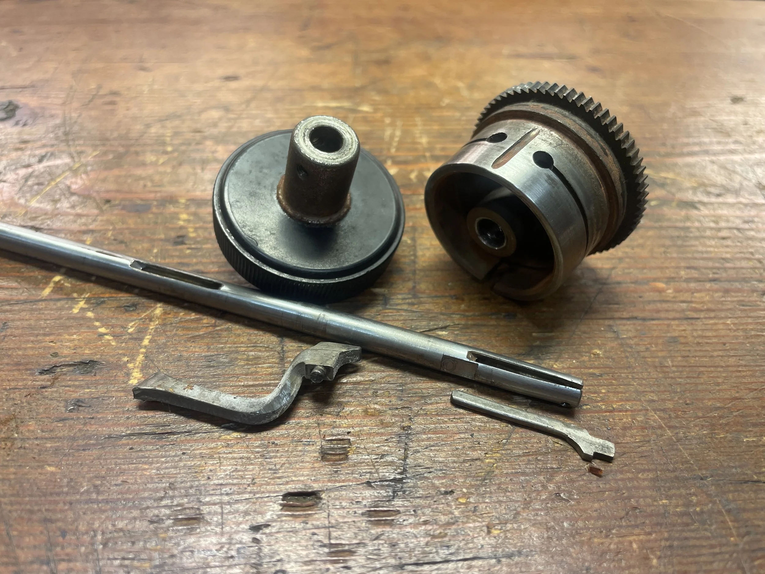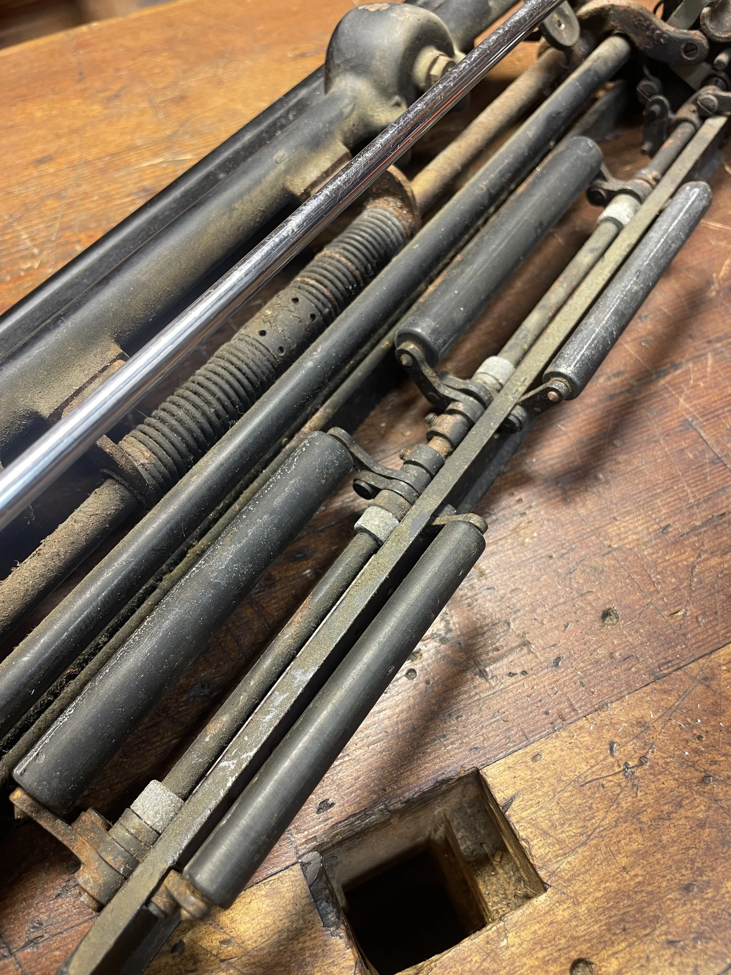 In the foreground lies Grim´s machine platen. Clearly platen knobs and free-line clutch assemblies are different.