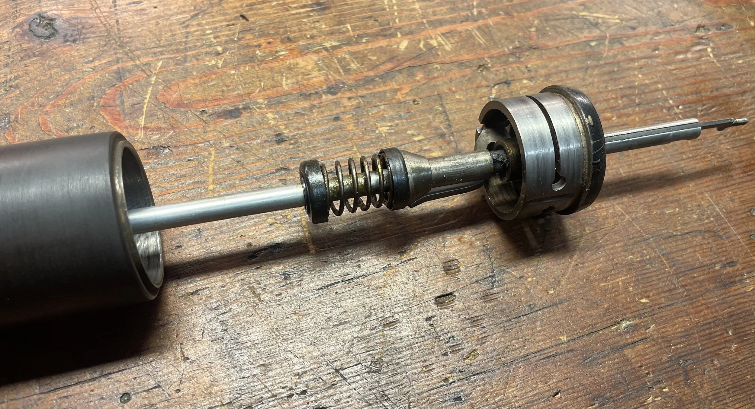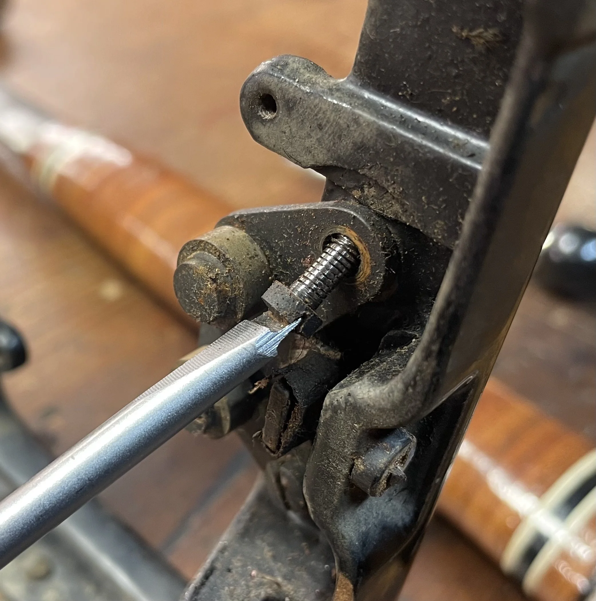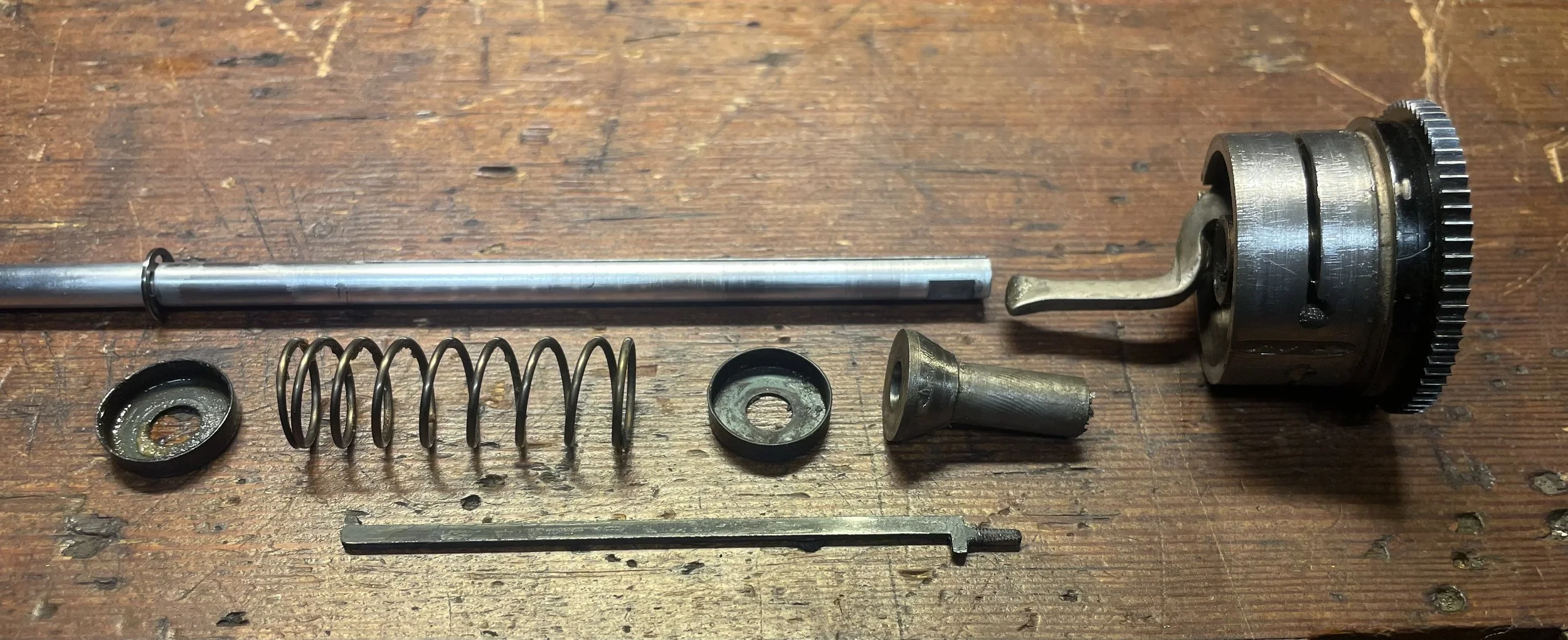 She was working, if not a bit reluctantly. Main issue was general dirt and sluggishness of the whole mechanism. Plus many slaughtered screw-heads, as if someone approached her with a chisel not a proper, hollow-ground screwdriver.