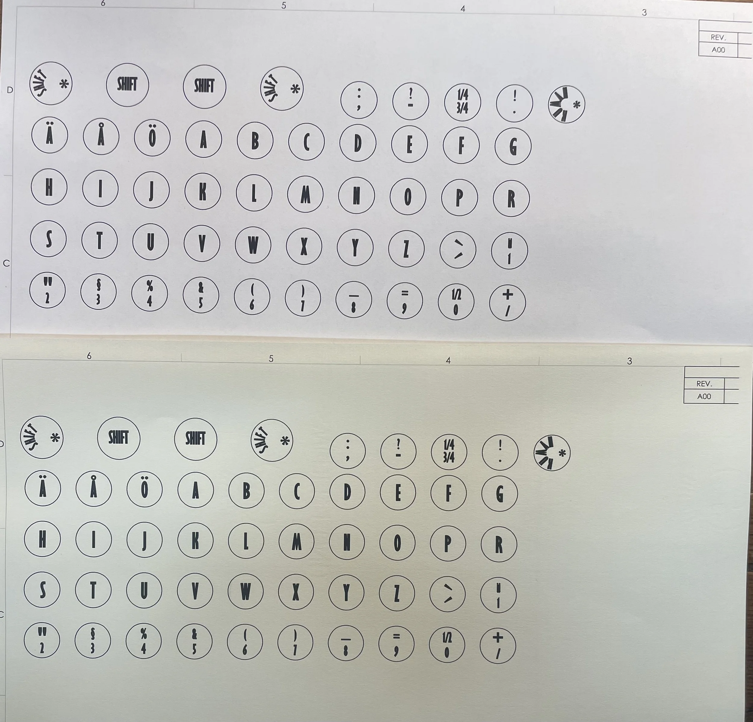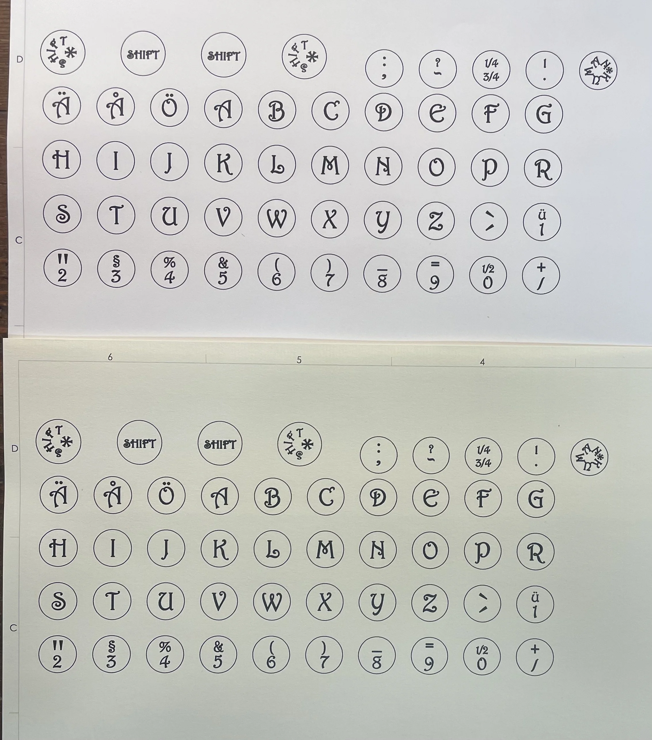 Now to the keys. I made two sets of key legends, printed on Sweden Bond (ivory white) and on standard, white paper (for Anton, extra-white fan):