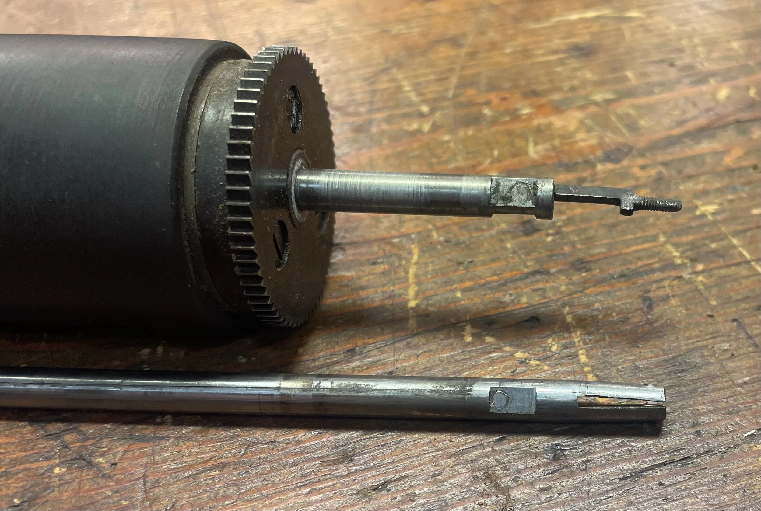 I carry on with removing the clutch and platen shaft. It is seized in place so good, abrupt twist is needed to remove the whole assembly.