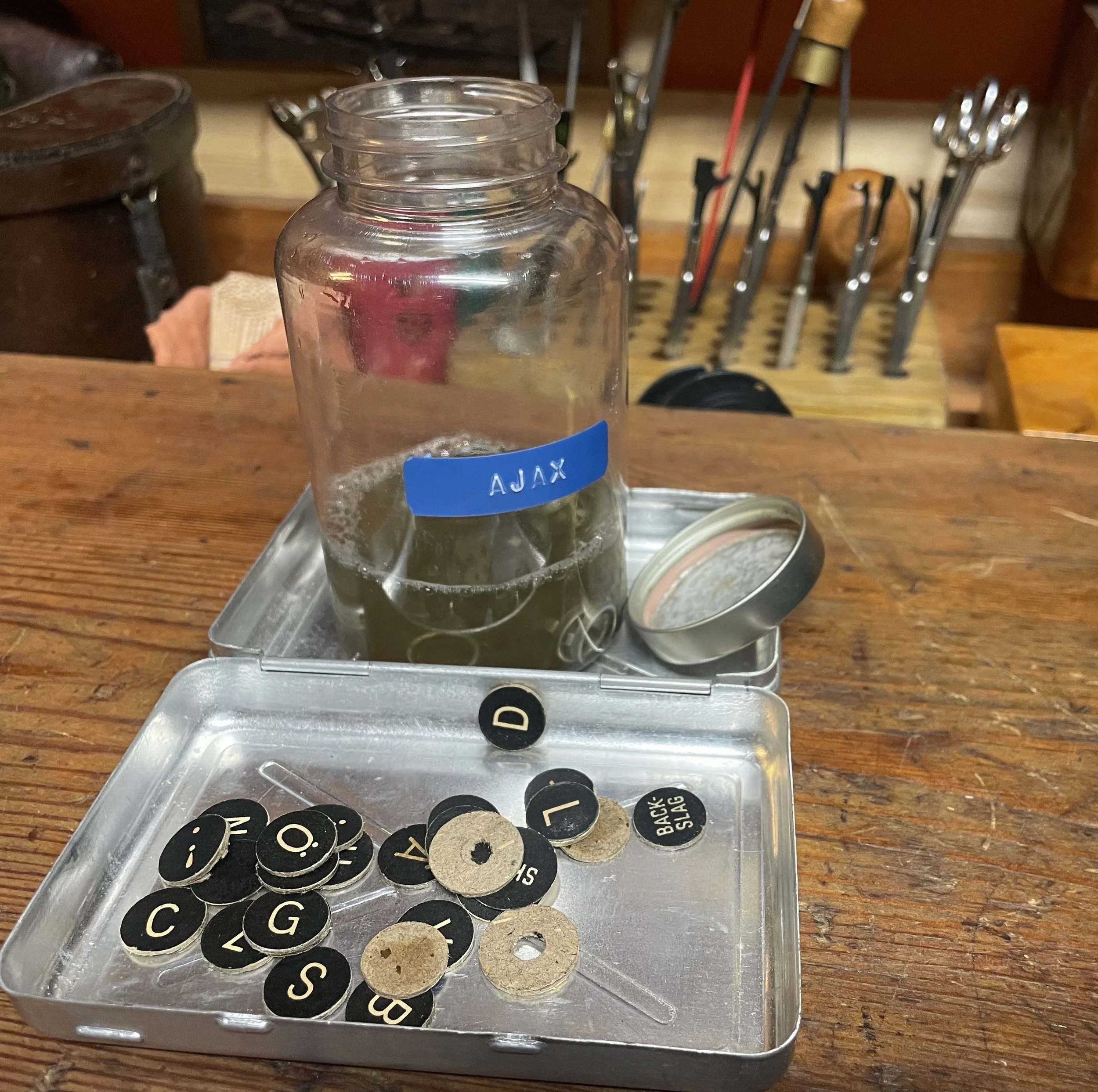 We need new cardboard spacers so I cut a set and glue onto key arms as it was originally.