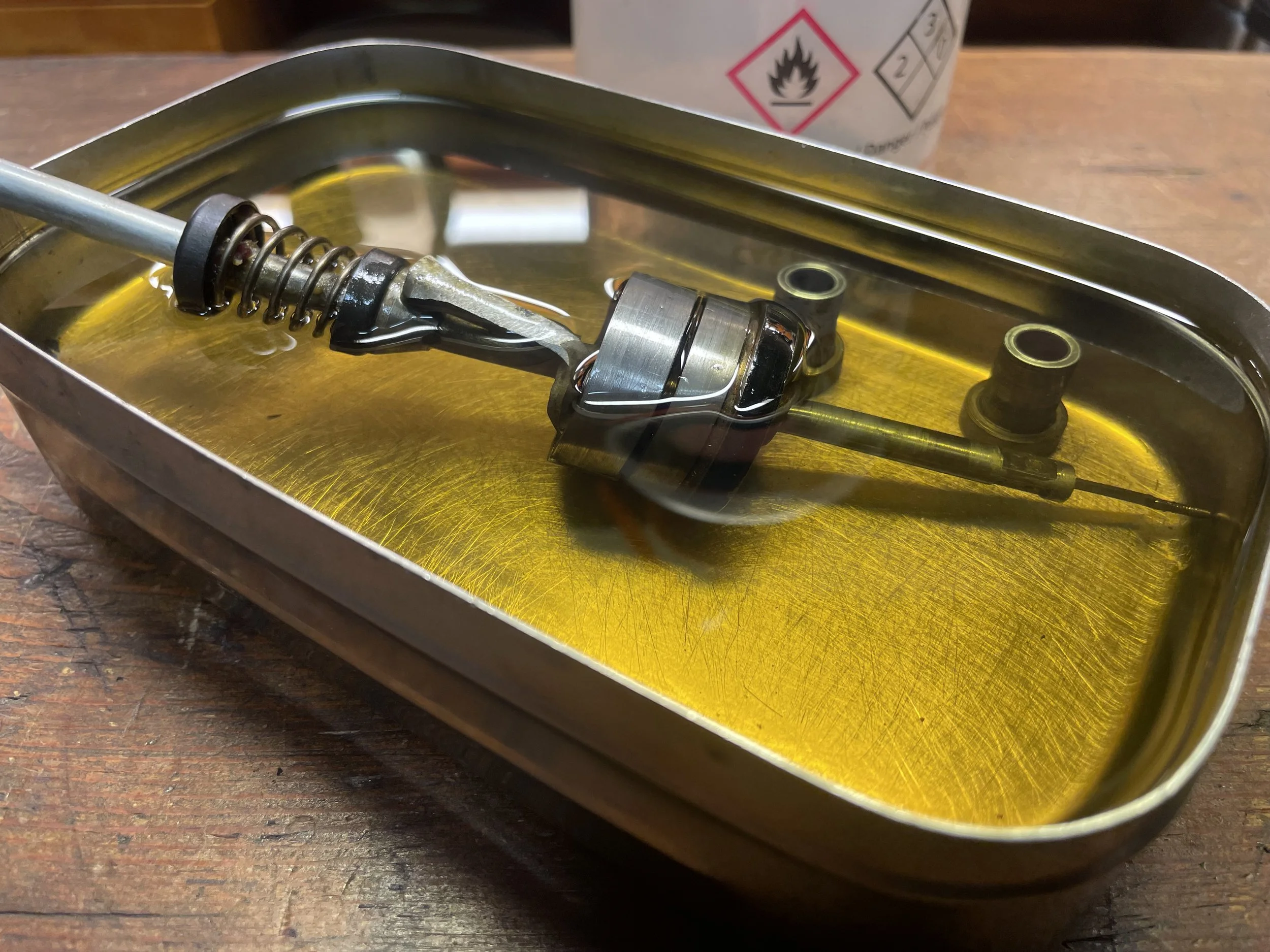 Key-rings were soaking long enough to start working on them. Metal brush comes handy in removing gunk rests.