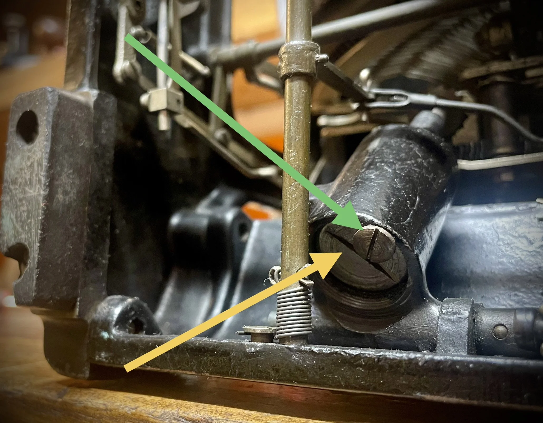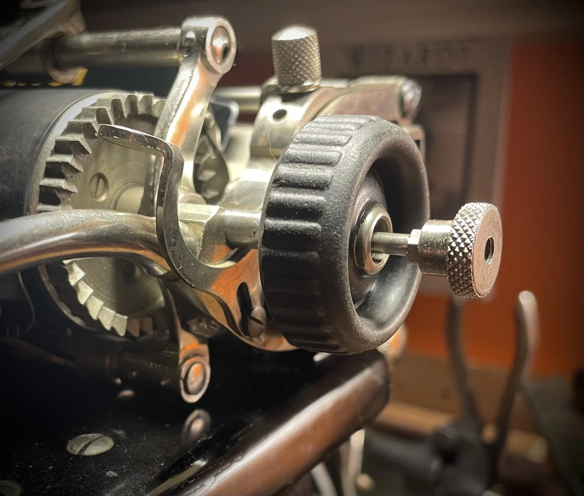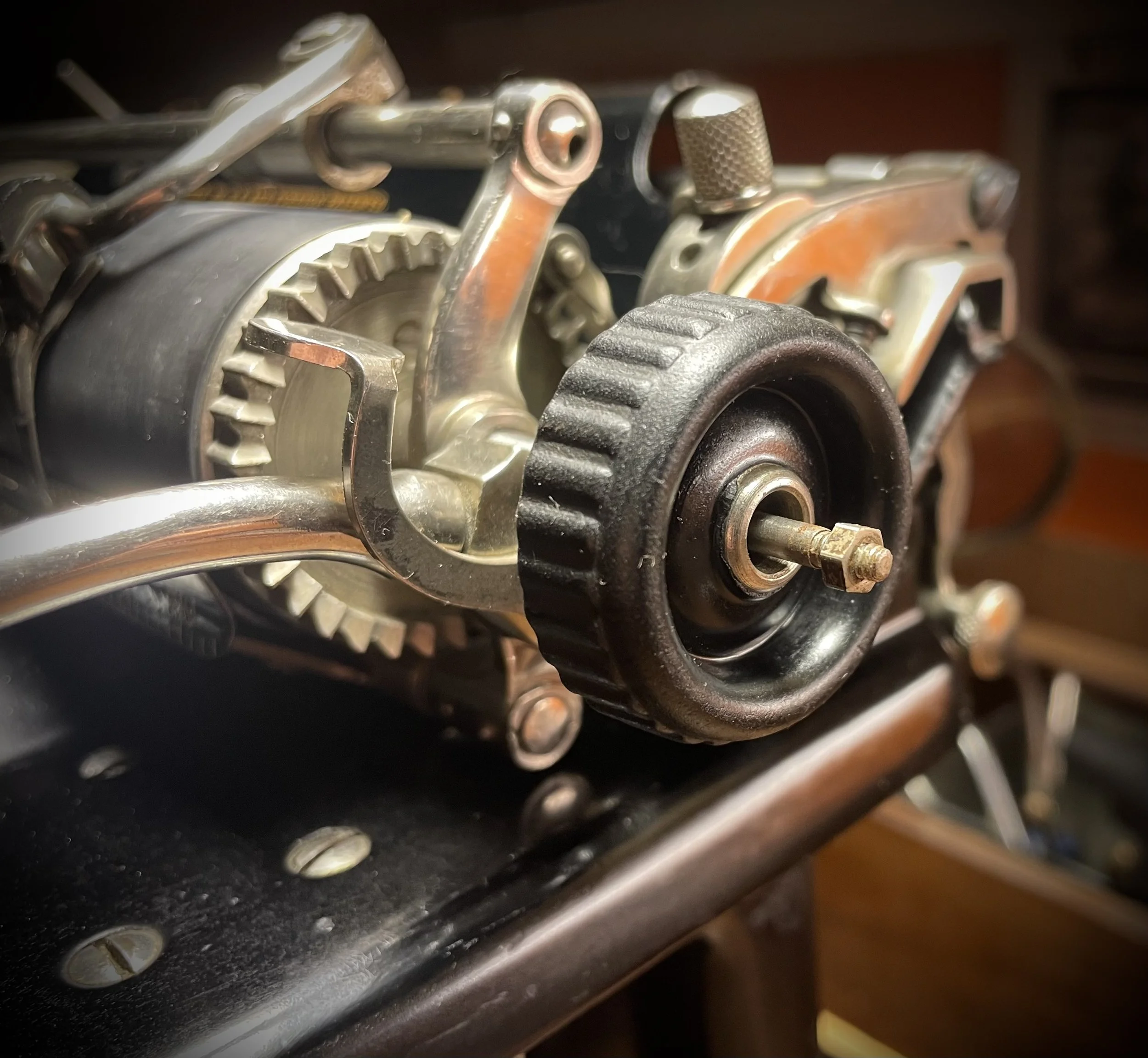 With the machine clean and working I had one last detail to attend: line spacing clutch mechanism. It is working but the axis was missing its chromed knob, leaving just small nuts to protect fingers from pain.