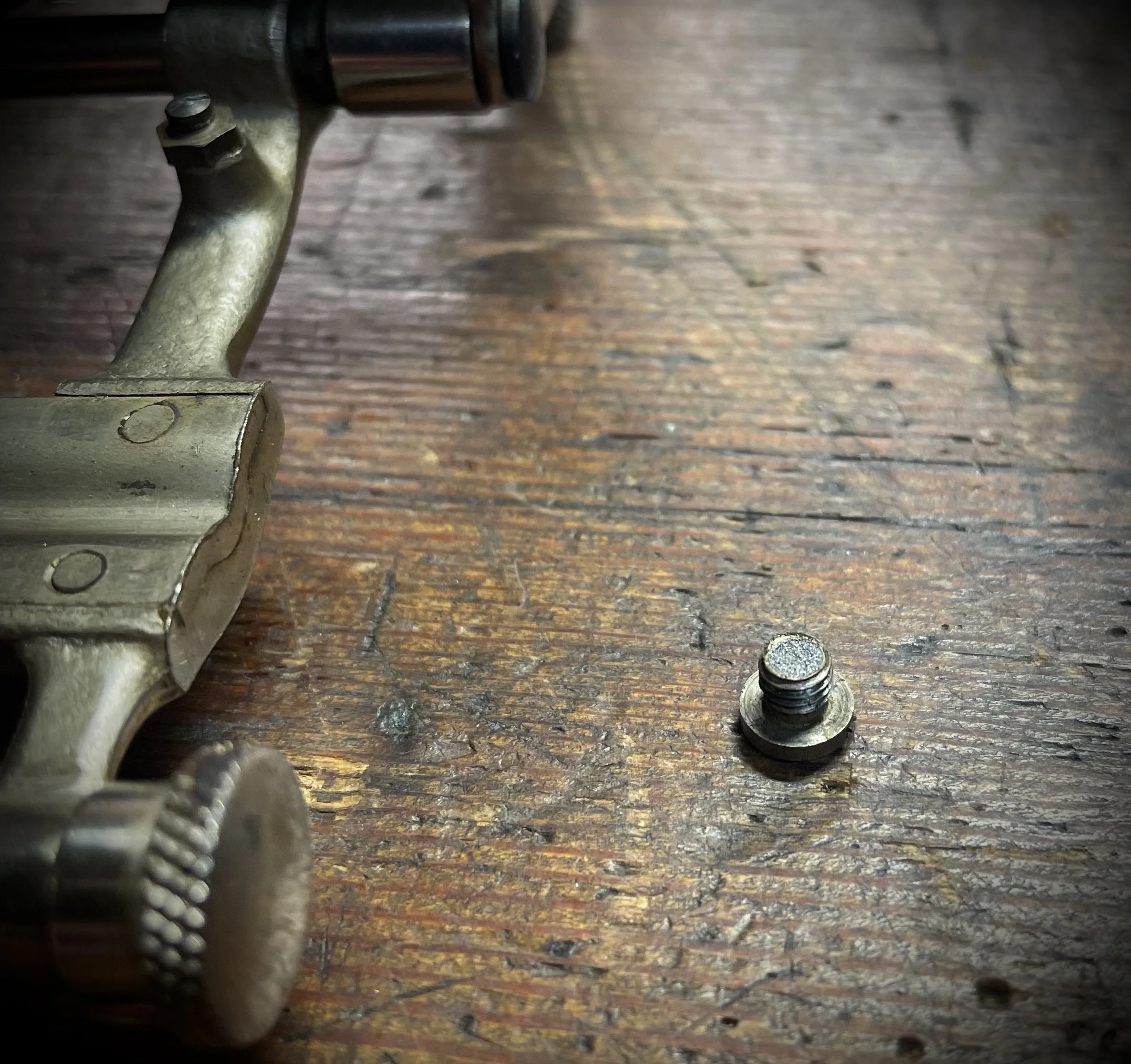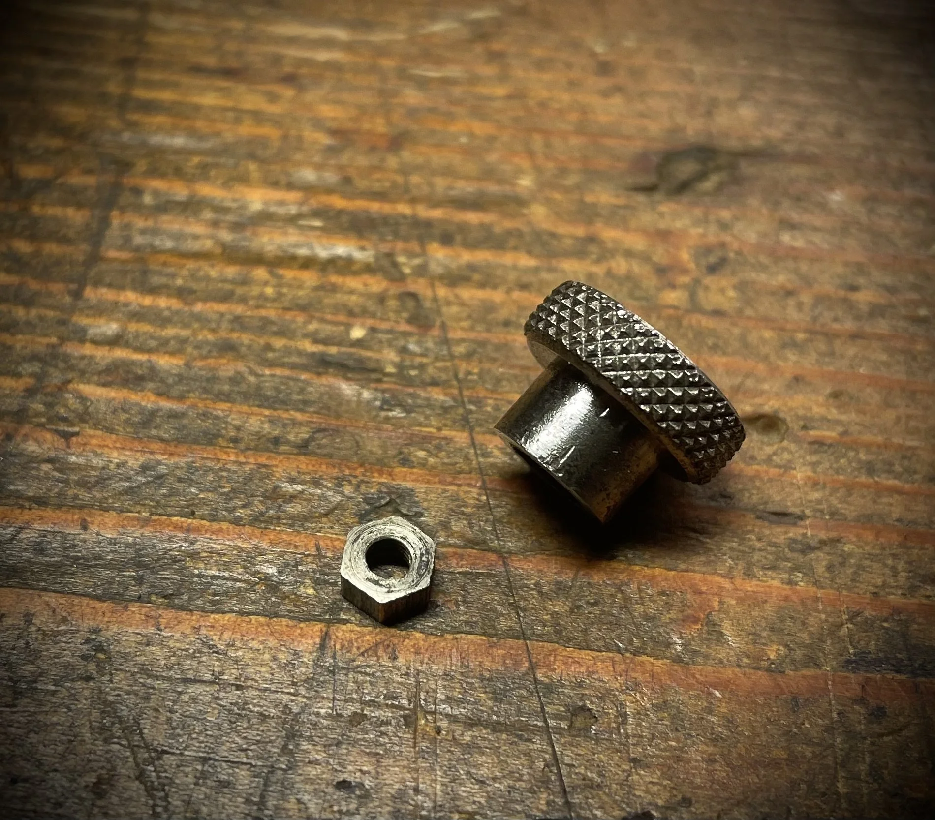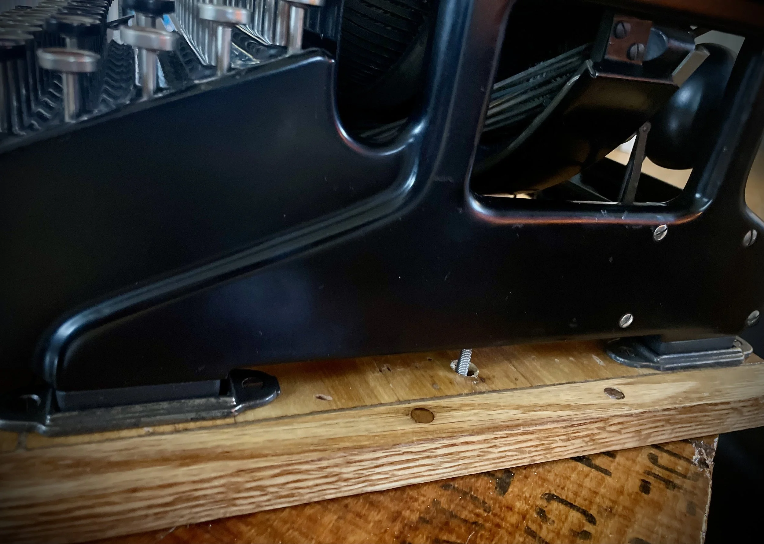 With the machine clean and working I had one last detail to attend: line spacing clutch mechanism. It is working but the axis was missing its chromed knob, leaving just small nuts to protect fingers from pain.