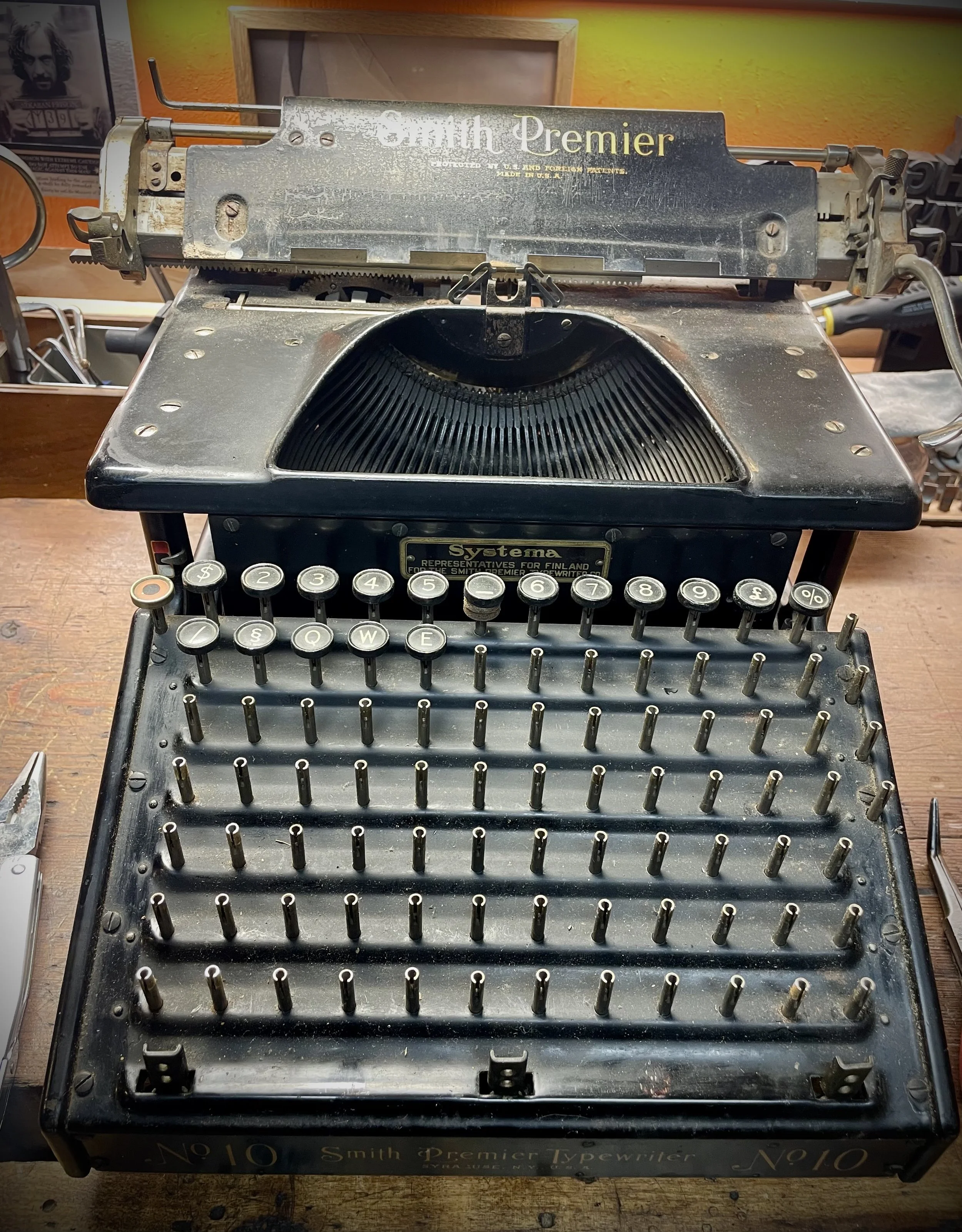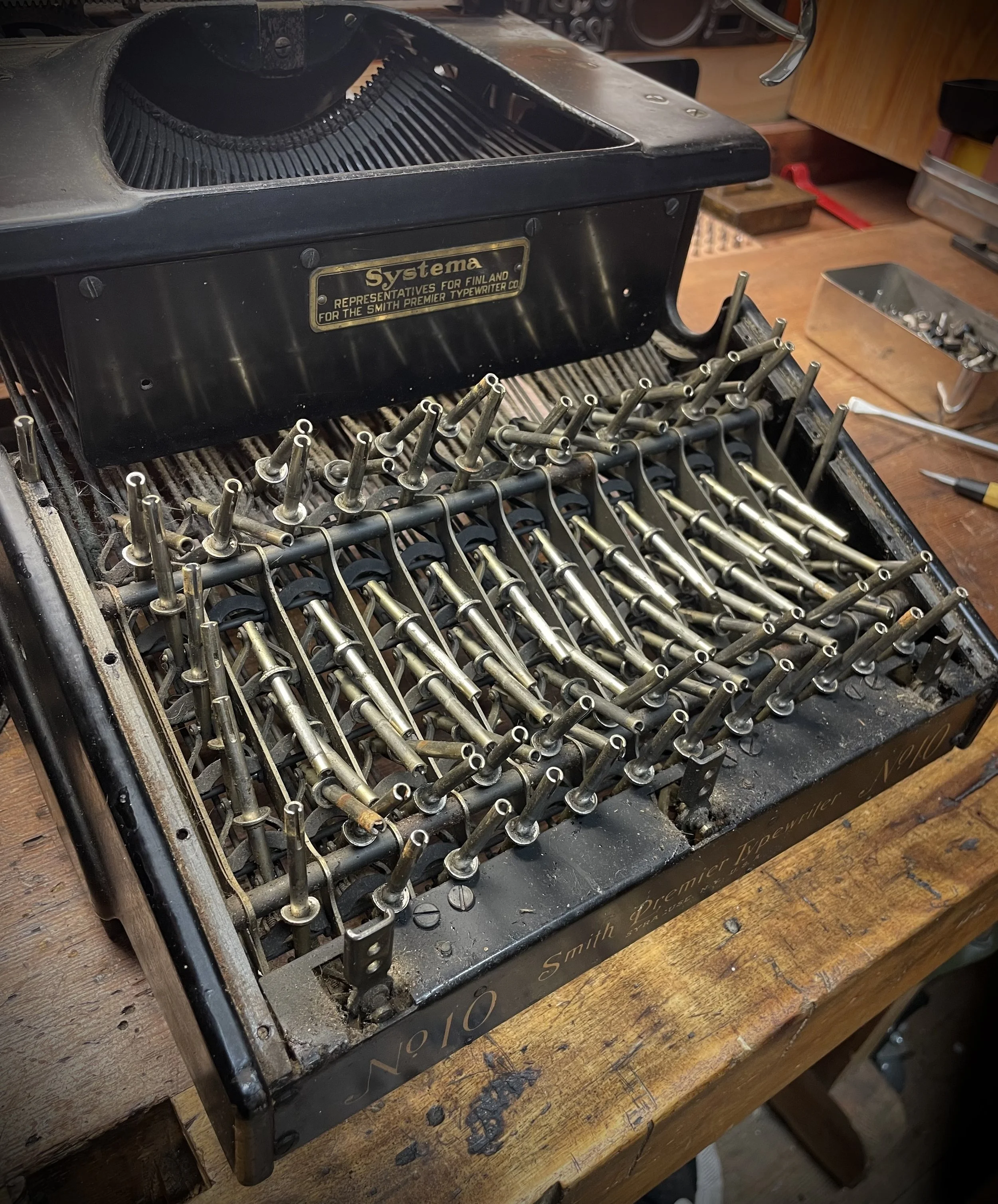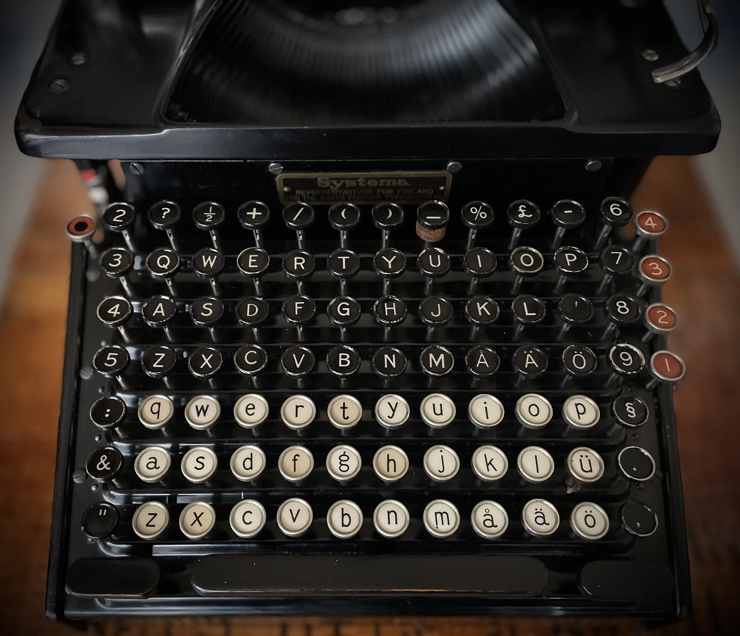 I guess we are lucky here, in Sweden: these machines are not liked, most collectors or ordinary people consider them ugly and unnecessary big. As long as the first point is indisputable (taste) the second is a misconception. If one see only a photo of this machine, with double keyboard, it is easy to get that impression. But in real life they are not bigger than any standard typewriter. In fact they “feel” smaller because of their wedge-like shape and open construction.