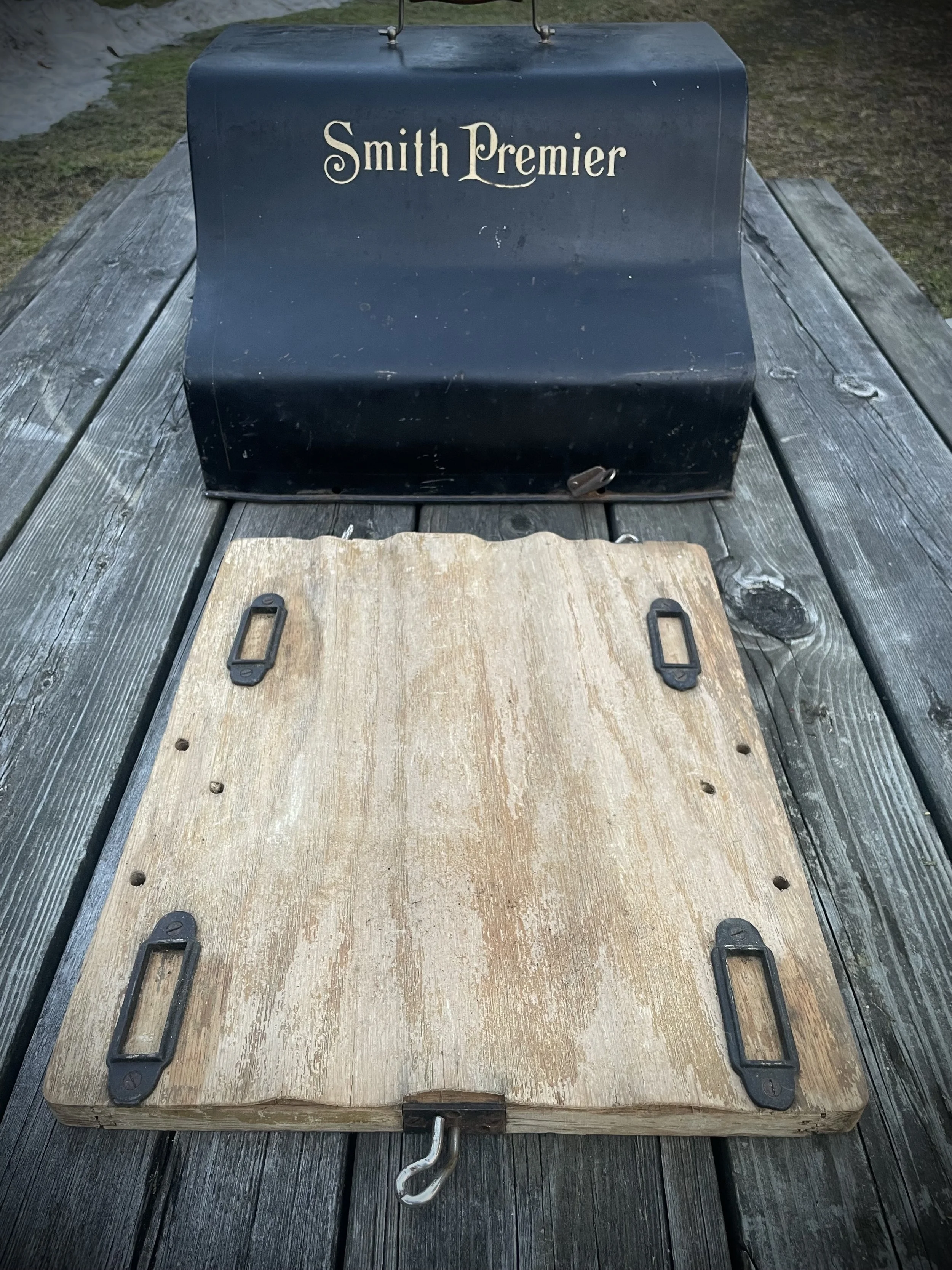Bottom part had its veneer gone, exposing wooden slats and machine-holding screw wells.