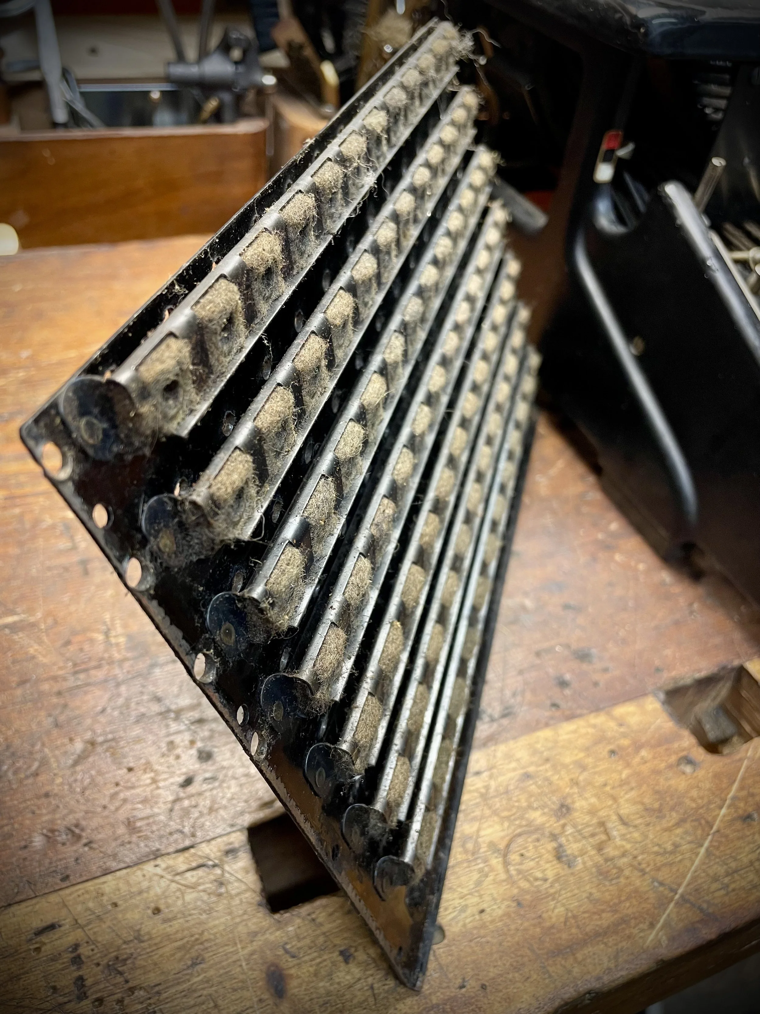 Type slugs, one per arm, sit by friction fit only. My machine had missing some so donor specimen came to help.