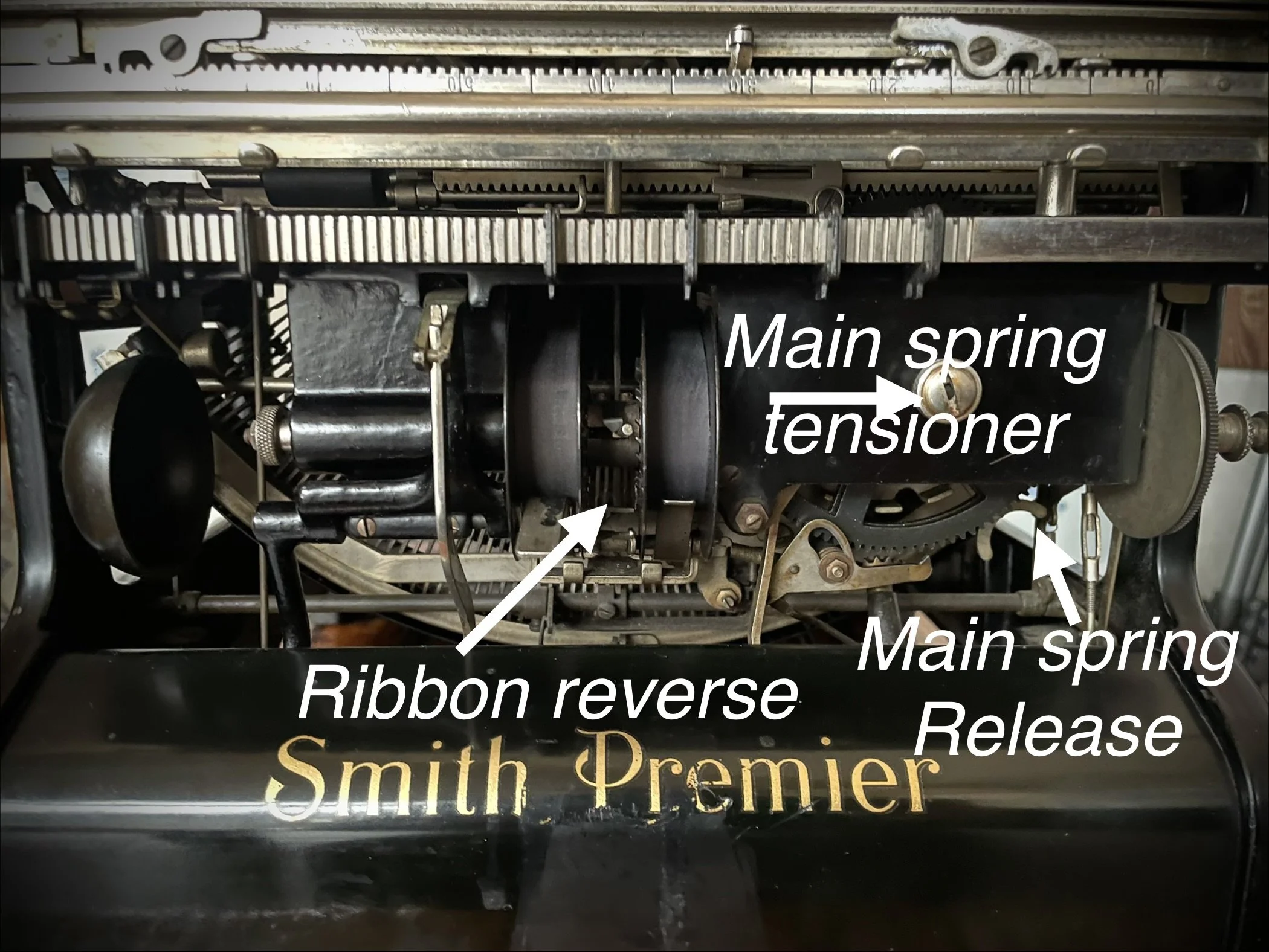 Some features on the back of the machine. Ribbon reverse is done within cranking handle on the side but can also be directly steered between the spools.