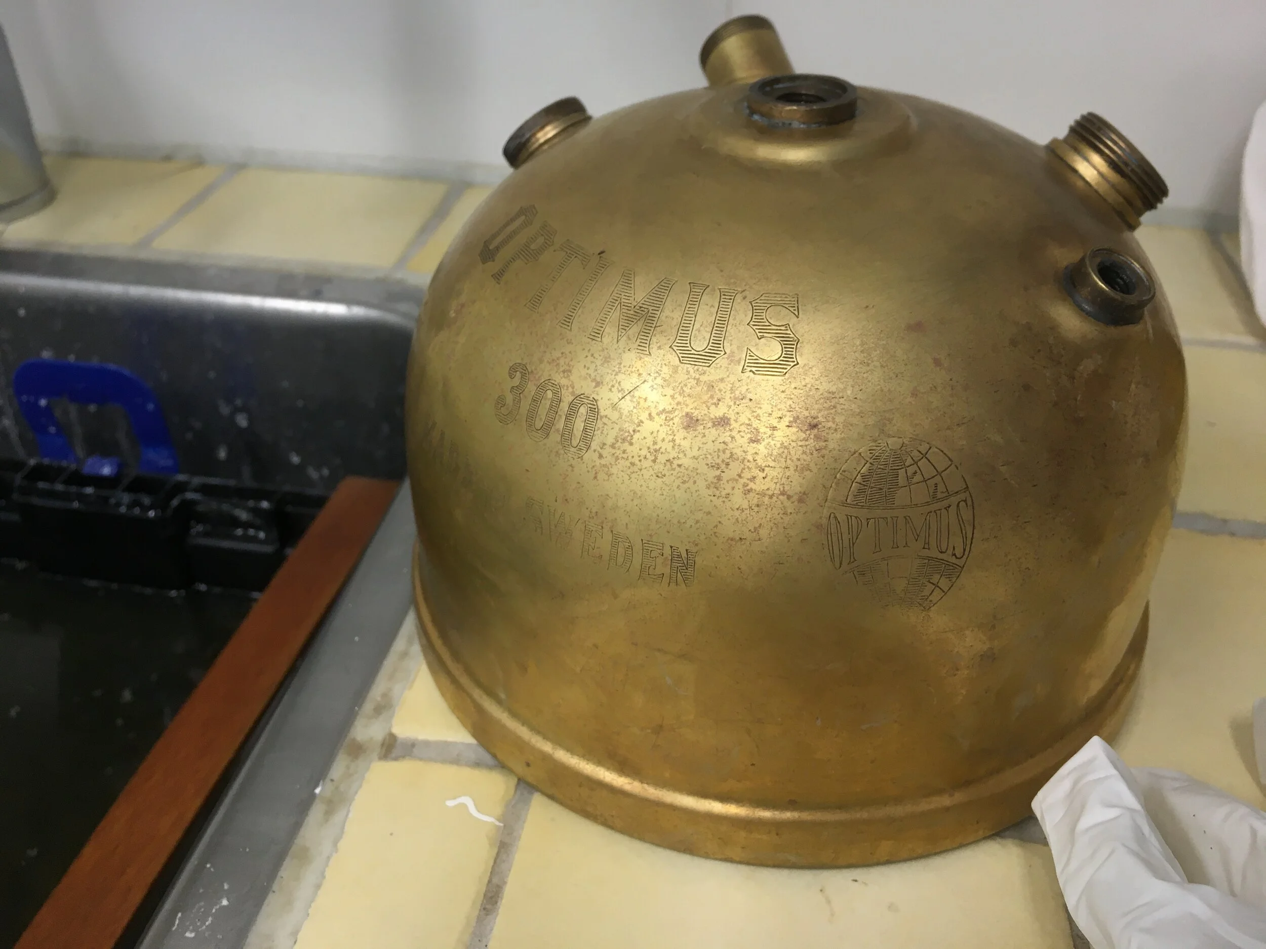 I’m currently fettling Primus 1001 with blue vent. Its fount has nickel in very bad condition. It would be easy just to strip it down to brass and polish to mirror finish but how would that look together with rust-etched globe cage etc?